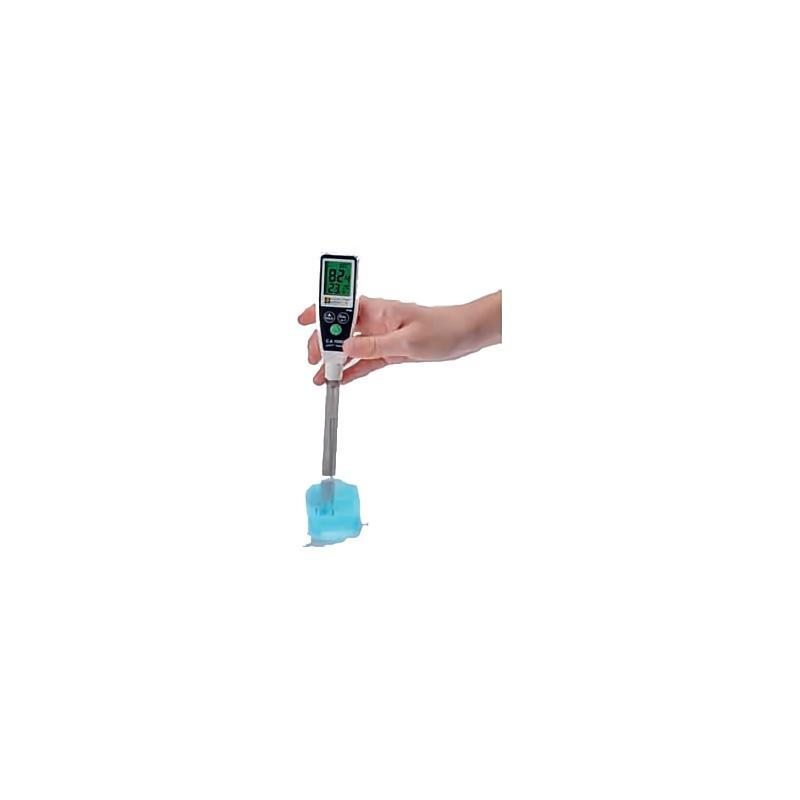 CA 10001 外形類似筆狀,一端配備 12 cm 長復(fù)合電極,內(nèi)置溫度傳感器。寬大的多參數(shù)屏幕可同時顯示 pH 值和溫度值(°C 或 °F)。