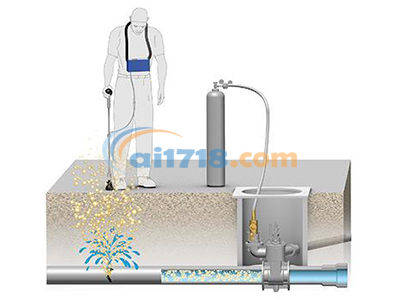 通過消火栓、鉆孔或流量計(jì)將示蹤氣體(H2N2)引入管道