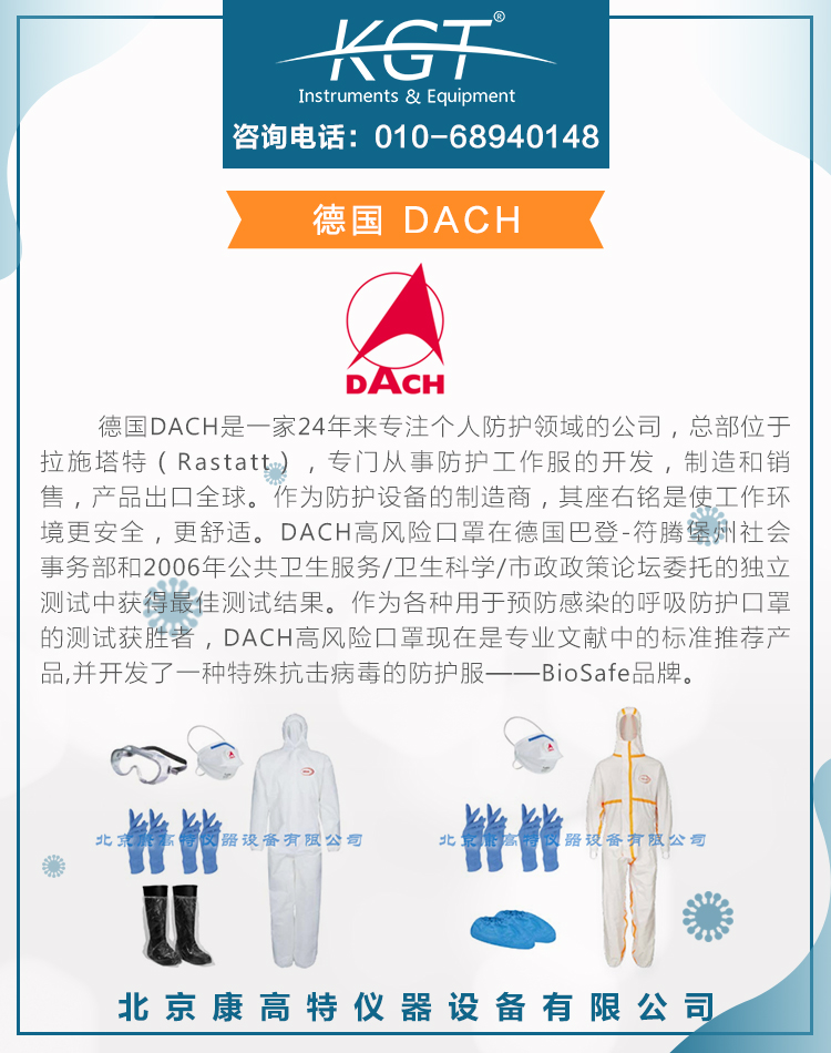 德國(guó)DCAH因中國(guó)2020年1月份的“新型冠狀肺炎病毒”與北京康高特儀器設(shè)備有限公司有緣合作,并委托康高特為德國(guó)DACH防護(hù)服的中國(guó)代理。德國(guó)DACH防護(hù)服對(duì)康高特的信任以及對(duì)能力的認(rèn)可,相信我司可以為德國(guó)DACH防護(hù)服進(jìn)一步開(kāi)拓市場(chǎng)、增強(qiáng)市場(chǎng)競(jìng)爭(zhēng)力,這也對(duì)是康高特的大力支持,在市場(chǎng)上的發(fā)展具有重要的意義。
