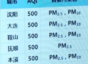 沈陽的PM2.5值*高一度達(dá)到1400微克/立方米,達(dá)到爆表級別。沈陽城中彌漫著灰白色霧霾,能見度不足百米,高層建筑在霧霾籠罩下若隱若現(xiàn),車輛行駛較緩慢,行人大多佩戴口罩匆匆而過。