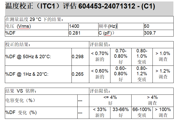 如圖所示,所測(cè)得的套管介損和電導(dǎo)率均處于好的狀態(tài),含水量處于新的。