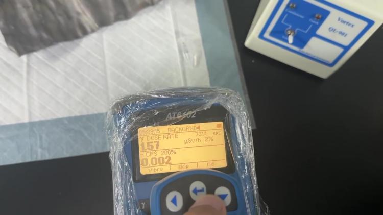 隨后使用AT6102對實驗室中的輻射源樣本進(jìn)行了測試。儀器迅速顯示了監(jiān)測到的數(shù)據(jù),展示了AT6102在環(huán)境輻射監(jiān)測中的高效性和準(zhǔn)確性。