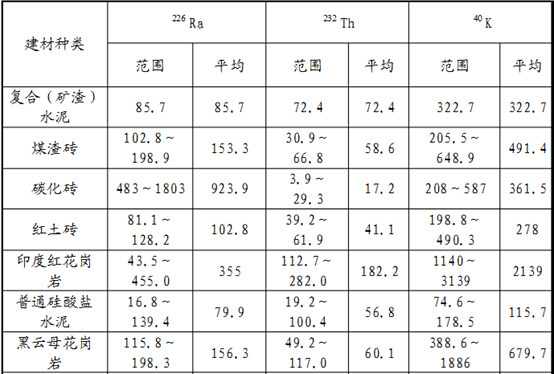 二、建筑材料產(chǎn)生的氡由于建筑材料中含有一定量的鈾、鐳,其衰變生成的氡可以進(jìn)入室內(nèi)。當(dāng)建筑物使用了鈾、鐳等放射性元素含量較高的建筑材料時(shí),這些建筑材料對(duì)室內(nèi)氡的貢獻(xiàn)很大。20世紀(jì)80年代以前我國居民住宅建筑材料主要是水泥和粘土磚,鈾含量和鐳含量較低,對(duì)室內(nèi)氡的貢獻(xiàn)處于正常平均水平。20世紀(jì)90年代以后粘土磚使用逐漸減少,取而代之的是粉煤灰砌塊磚。而粉煤灰磚發(fā)泡多孔,孔隙度超過60%,氡的析出率很高。此外,裝修用的石材板和瓷磚大量應(yīng)用,又增加室內(nèi)氡的來源。因此,建材的選擇對(duì)室內(nèi)氡濃度有著重要的影響。以下是我國常用建材放射性核素比活度水平:(表2)