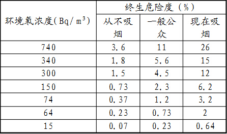 表4 氡及其子體致肺癌的終生危險(xiǎn)度