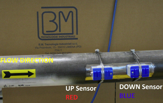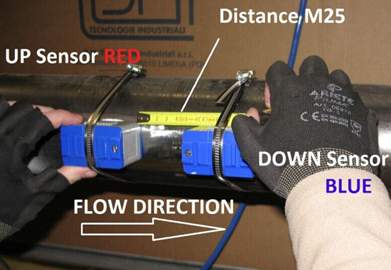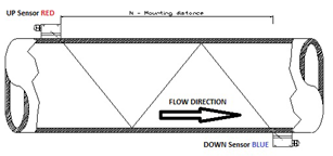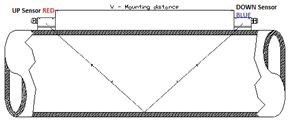 儀器將會在MENU25中顯示傳感器的安裝距離,此時,便可以開始安裝傳感器了,安裝前應(yīng)該在管壁上涂抹耦合劑,否則傳感器與管壁會接觸不良。
